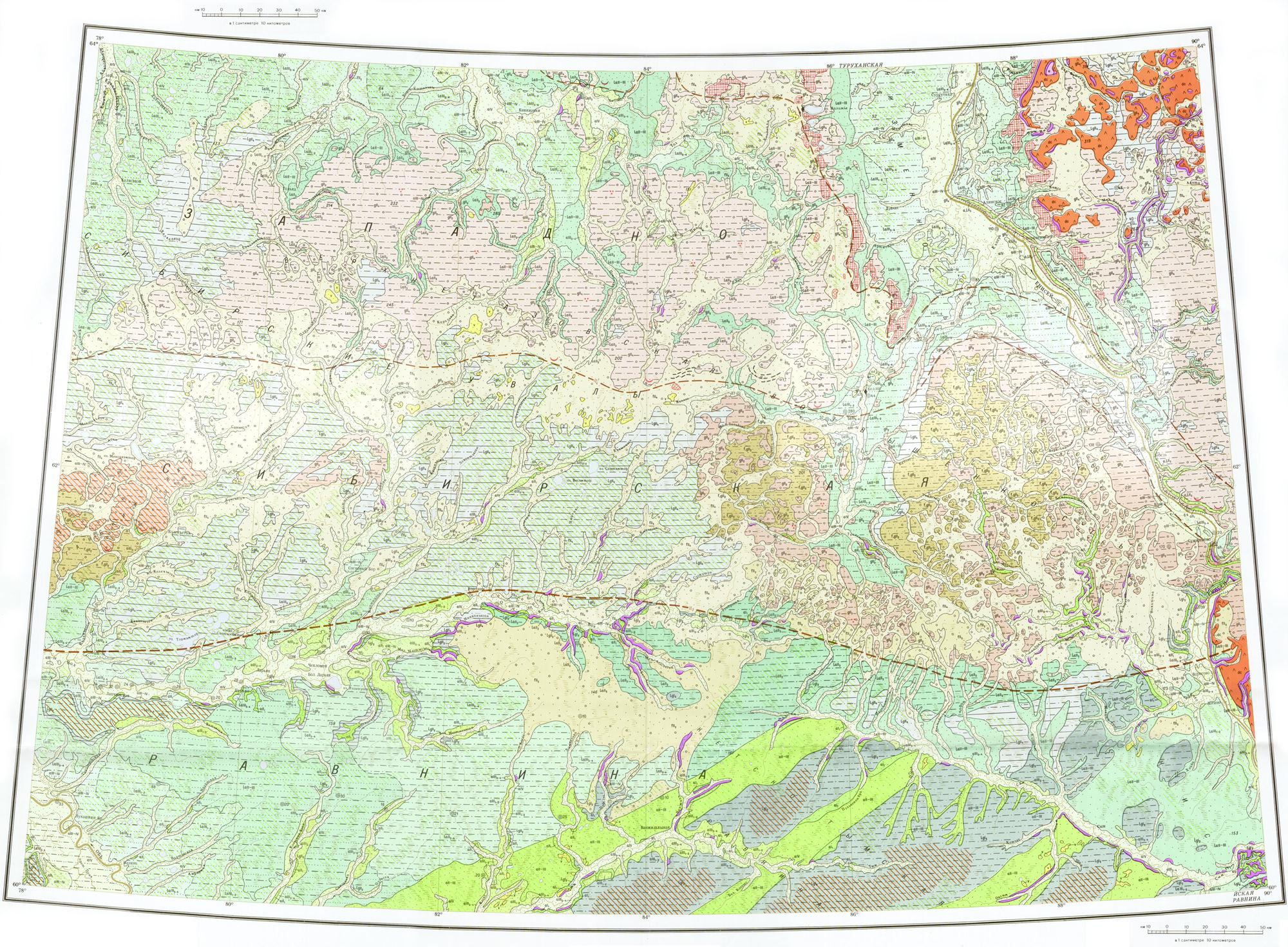 P-44,45 (Верхнеимбатск). Государственная геологическая карта Российской Федерации (новая серия). Карта четвертичных образований