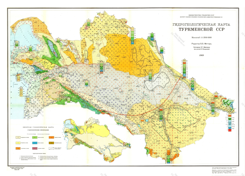 Карта составлена:Управление геологии и охраны недр при Совете Министров Туркменской ССР, 1969 г.