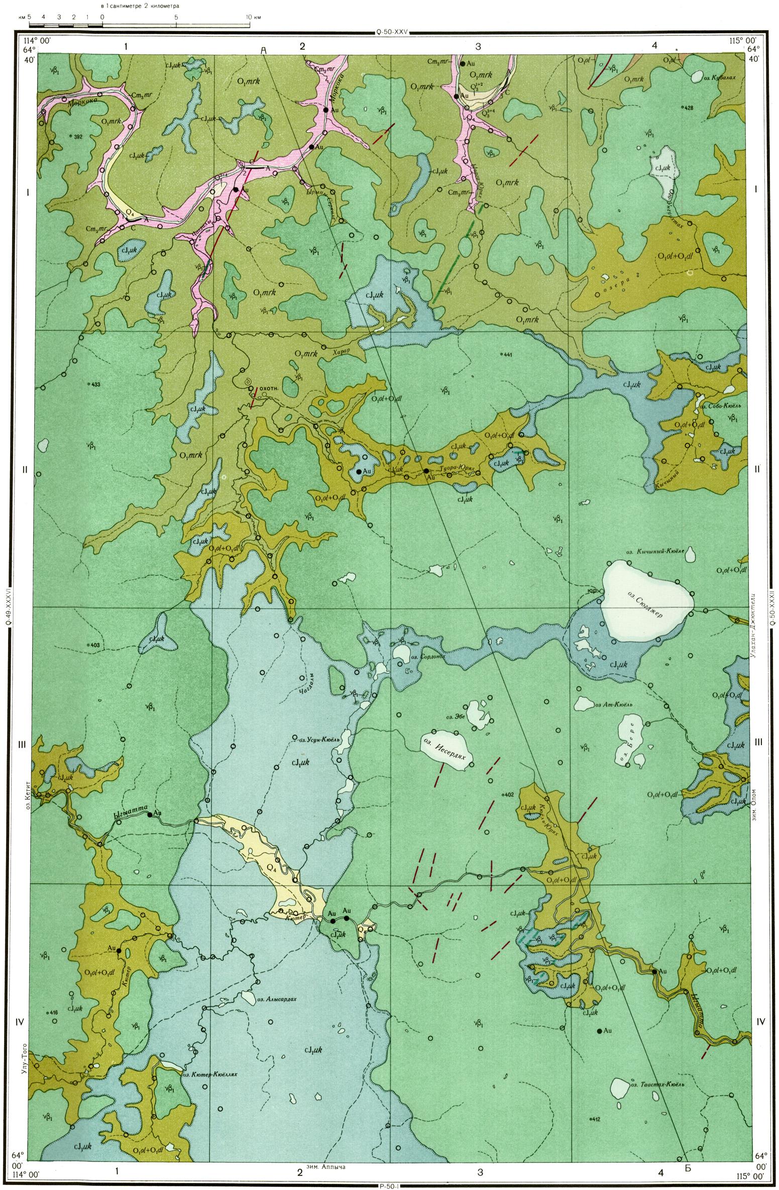 Q-50-XXXI. Геологическая карта СССР. Геологическая карта и карта полезных ископаемых дочетвертичных образований. Верхне-Вилюйская серия