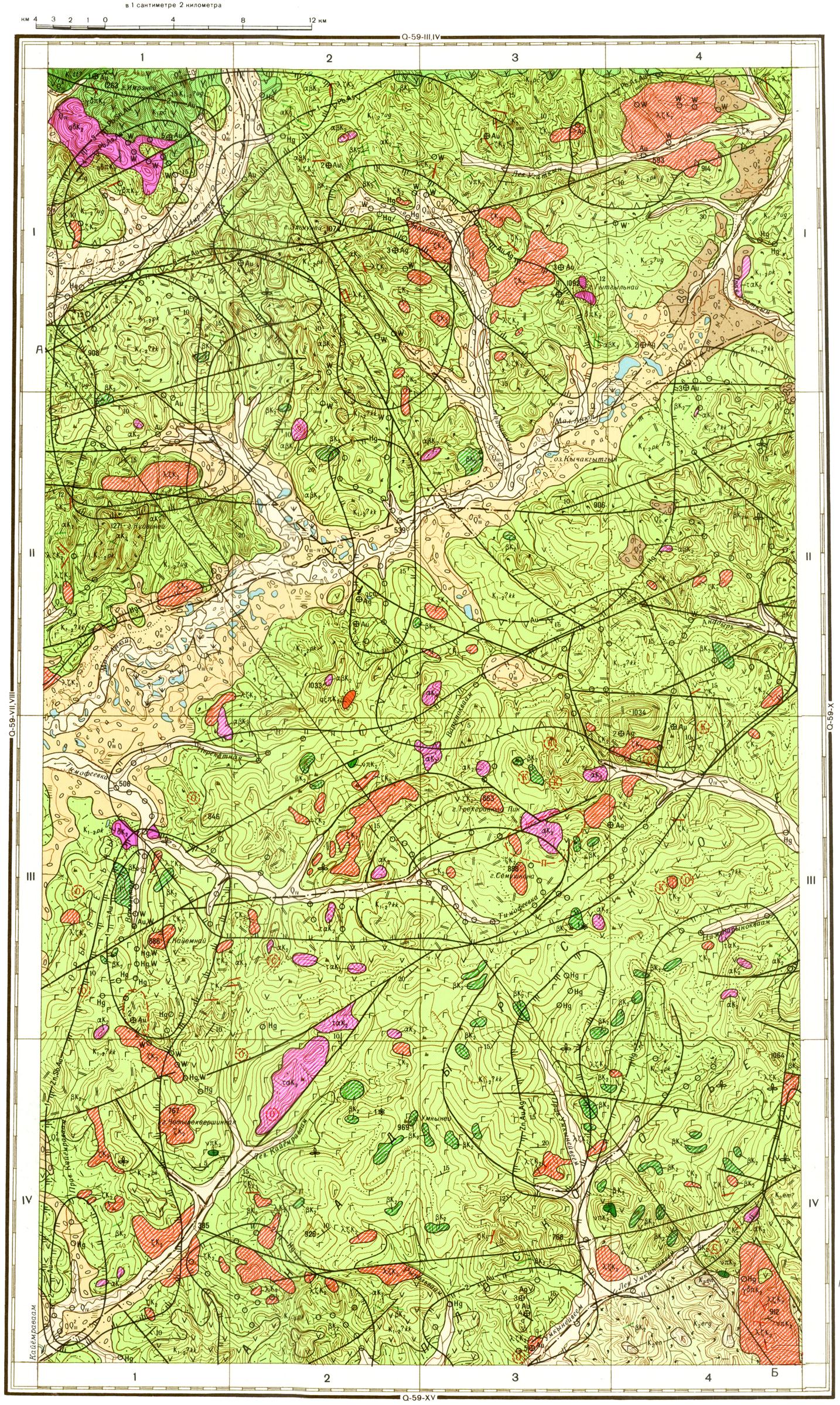 Q-59-IX. Геологическая карта СССР. Геологическая карта и карта полезных ископаемых дочетвертичных образований. Анадырская серия