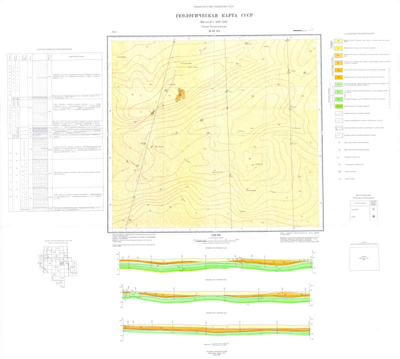 K-41-V (к.Бекберген). Геологическая карта СССР. Кызылкумская серия