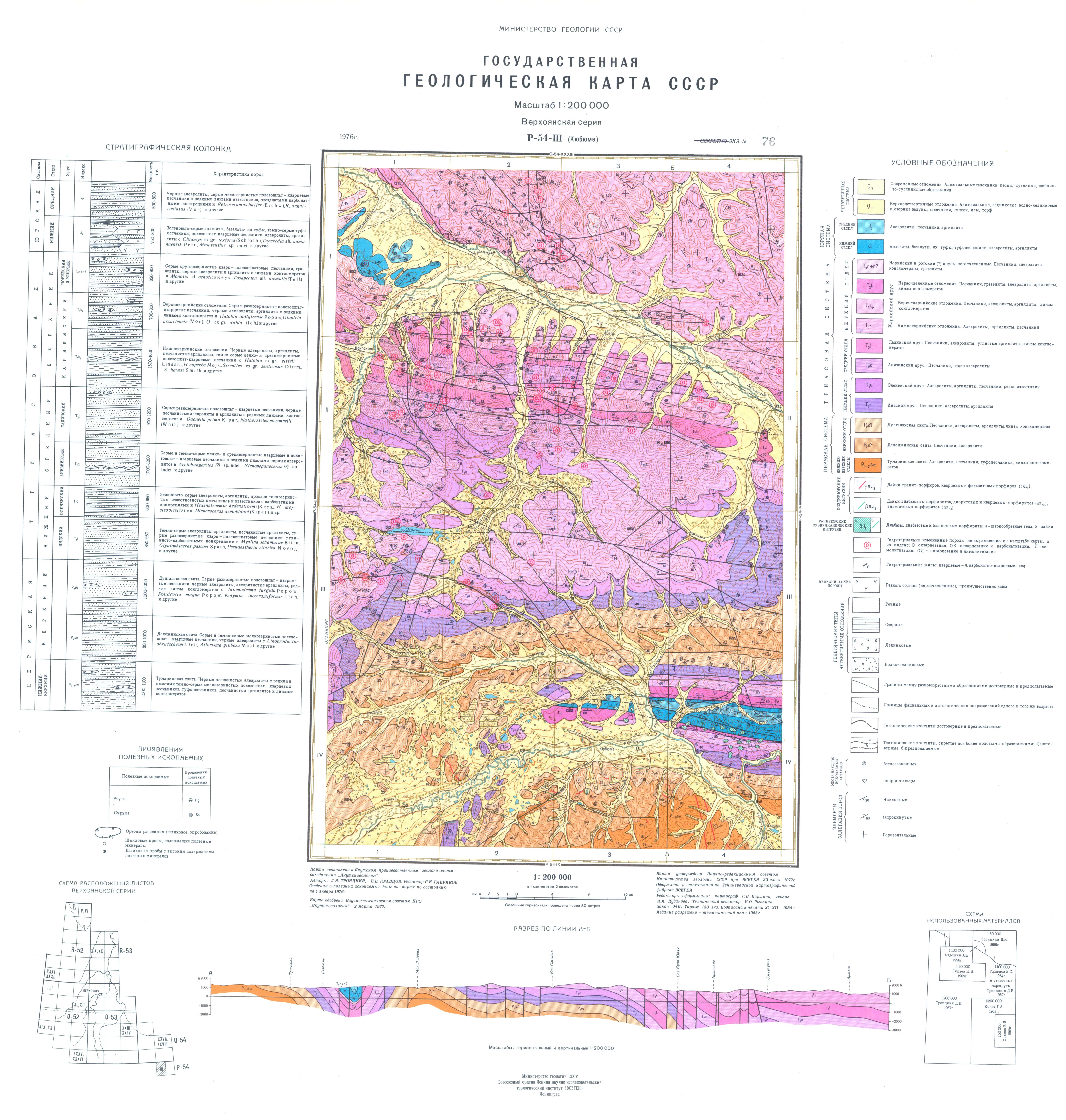 P-54-III (Кюбюме). Геологическая карта СССР. Геологическая карта и карта полезных ископаемых дочетвертичных образований. Верхоянская серия